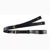 Läder, svart, med mässingsdetaljer. 44" (112 cm) lång x 1" (2,5 cm) eller 1¼" (3,2 cm) bred. Ching Specialty finns också i kastanjebrun och inkluderar mittrem, 9" (23 cm) lång. Sling swivels ingår ej.