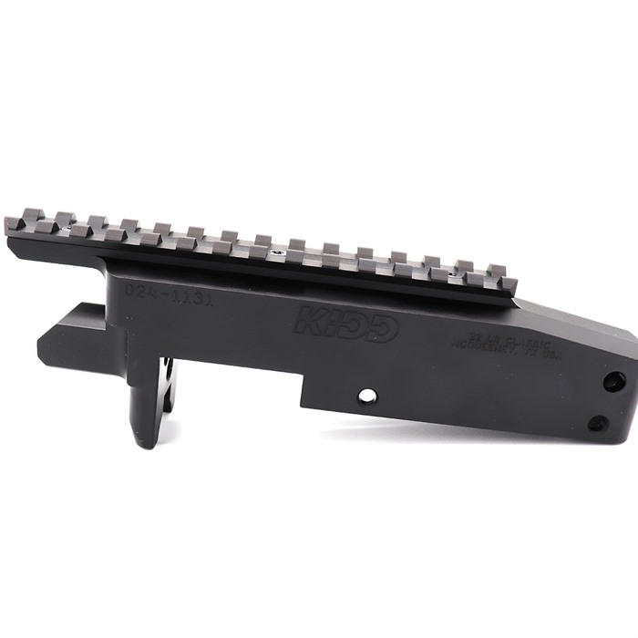 KIDD .22LR Classic Receiver är en eftermarknadsreceiver med en slip-fit design som följer branschstandarddimensioner. Den är utformad för att ge enkel åtkomst till bakre rengöringshålet och har en egenutvecklad, utbytbar låg kikarsiktebas med varierande minut av vinkel (MOA). Zero MOA är utmärkt för 50 yards och under, medan 20 MOA är användbart för 150 yards och över.