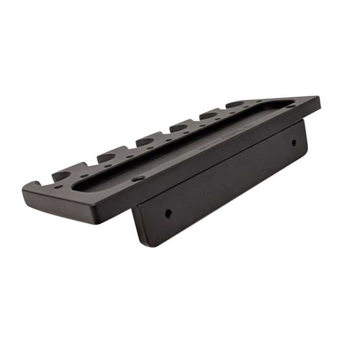 Varje AREA 419 Cleaning Rod Storage Rack är maskinbearbetad från 6061-T6 aluminium och har utskärningar för sex rengöringsstänger och 12 jags eller borstar. Stängerna glider in i utskärningarna, och koniska motborrningar gör att varje stängerhandtag kan sätta sig på plats och förbli säkert. En medföljande bricka gör det möjligt för användare att förvara små, diverse komponenter. Varje förvaringsställ mäter 9,5 tum x 4 tum.