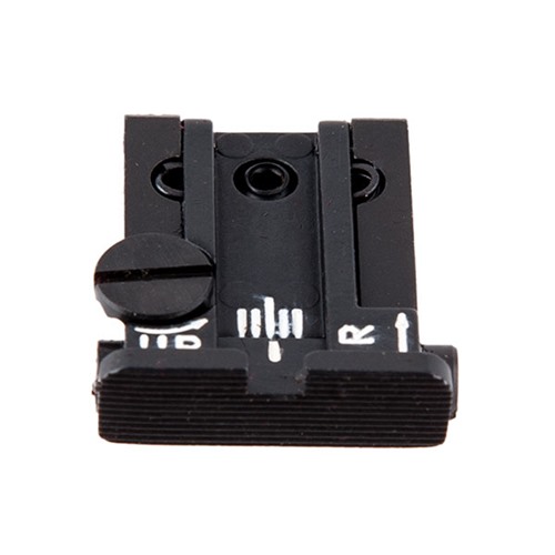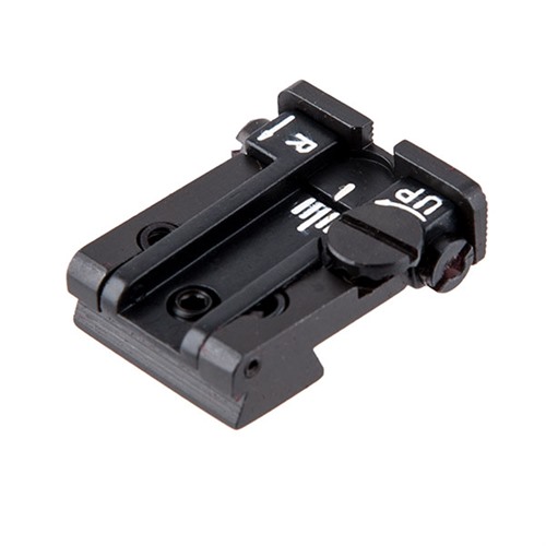 - Justering: Justera vindriktning och höjd med hjälp av de härdade klickskruvarna tills siktet är justerat efter dina skjutpreferenser.