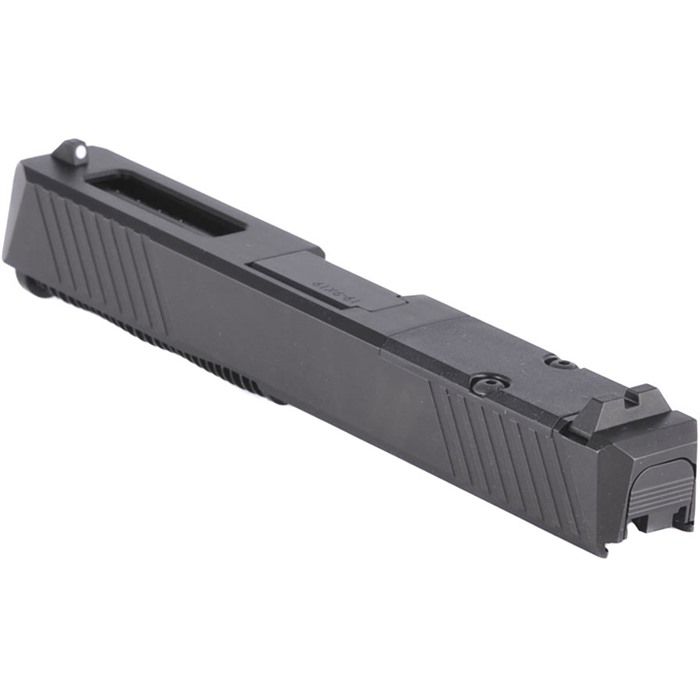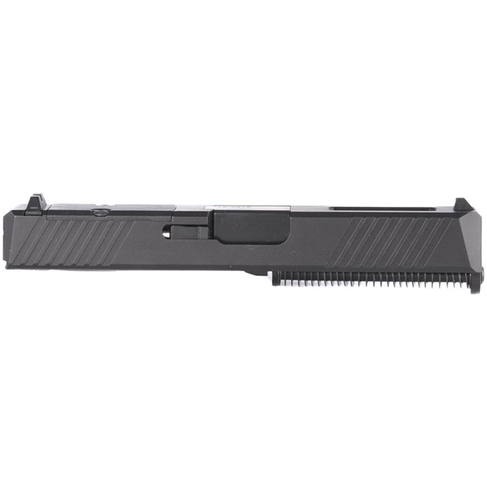 Complete, Fully Assembled Feature-Rich "Top Half" With Threaded & Ported Barrel Options Top off your next custom pistol build or upgrade with our Complete RMR Slide Assembly for Glock® 19 Gen3, available in three configurations. You can get your slide with a premium match-quality barrel, a ½"-28 tpi threaded barrel to accept a sound suppressor, or with a ported barrel that vents through a window in the top of the slide to counteract muzzle rise and help you keep the sights on the target for subsequent shots. This eliminates the need to install a bulky compensator on the muzzle, which means your new comped pistol will still fit standard holsters for the Glock® 19. These slides come fully assembled with the barrel and all the internal small parts installed, making this RMR Slide the ideal upgrade for your factory Glock® 19 Gen3 pistol or the perfect "top half" for a brand-new custom gun built on a compatible frame from another manufacturer. It features a pre-cut slot for easy, secure, low-profile mounting of a reflex red dot sight that fits the Trijicon RMR footprint. If you're not mounting a red dot at the moment, we've included a lightweight reinforced polymer cover plate to neatly fill the slot. Our RMR Slide comes with standard-height front and rear sights, which can serve as your primaries or a backup "iron" sights when paired with a red dot sight. Fits Gen3 Glock® 19 pistols & clones Comes COMPLETE with barrel, front & rear sights, and small parts installed Built-in mounting slot for reflex sights with the Trijicon RMR footprint Optic slot cover plate & recoil spring assembly also included Slide machined from 416 stainless steel billet, with a Black Nitride finish Choice of Solid top slide with standard barrel or ½"-28 tpi threaded barrel, OR distinctive top Window slide with ported/compensated barrel Each RMR Slide for Glock® starts life as a billet of 416 stainless steel that is machined to Glock® factory specifications inside, with a tough, extremely wear-resistant black Nitride finish. This slide fits standard Glock® factory G19 frames and compatible aftermarket frames. The match-quality barrel is machined from premium 416R stainless steel alloy. The muzzle of the threaded barrel has standard ½"-28 tpi threads. The ported barrel has eight ports angled to provide just the right counterforce to muzzle rise. On the sides at the rear, you'll find distinctive wide, shallow cocking serrations that give excellent "purchase" to rack the slide, plus a mirrored set of serrations up front that aid in manipulating the slide to press-check the chamber. Both sets of serrations make it easy to manipulate your pistol's slide from any angle and in any position. We'll admit it: these serrations just look cool, too! Whether you're assembling a custom pistol to meet specific needs, or you're upgrading a factory Glock 19 for enhanced performance and versatility, a Brownells complete slide assembly is helps you complete your project quickly and easily! Brownells Gun Tech™ Note: Channel liner required for these slides. Channel liner is a press fit and requires a tool to install. We recommend #777-100-017.