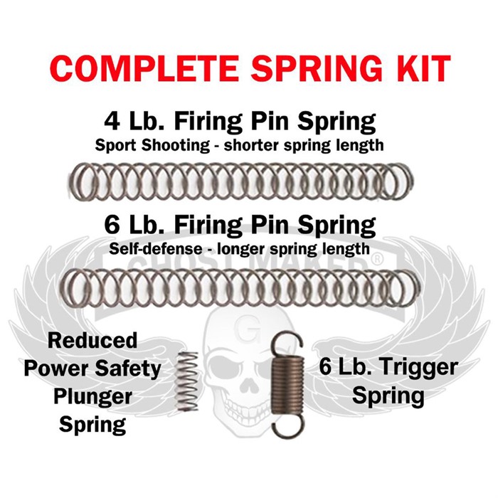 GHOSTs COMPLETE SPRING KIT erbjuder alla fjädrar som behövs för att justera din avtrycksvikt för både sportskytte och självförsvar. Detta kit innehåller: