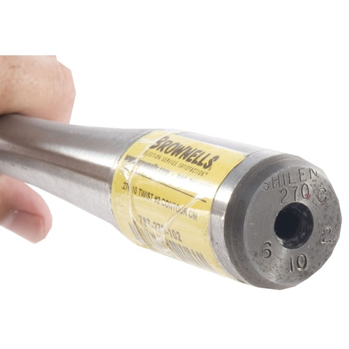 All the loving care of the best stockmaker and the meticulous attention to detail of the master machinist will not make a gun shoot any straighter than the accuracy capability of the barrel used. And, it is the insides of a barrel, that very small and vital area of lands and grooves over which the gunsmith has no control, that can determine whether the finished work of art is for shooting - or “just for looks”. Craftsmanship . . . not price . . . determines the quality of a barrel. But, by the same token, the customer willing to spend the money for a custom gun is shortsighted indeed, if he starts economizing and orders “just any old barrel so long as it’s cheap”. Furthermore, he is jeopardizing your reputation as a gun builder by making such a request. We, as your supplier, are laying our reputation (and yours, too!) on the line by offering you barrel blanks. They have got to be good or we are in trouble! Big trouble!! We must never sell you anything but that which will enlarge your stature with your trade. And, we feel that the Brownell Barrel, made for us by Ed Shilen, will do just that! Shilen barrels, either chrome moly or Stainless, are rifled with six lands and grooves by the “Cold Forming” process using carbide dies made in Shilen’s own plant under the most rigid controls. This rifling method achieves extremely close inside uniformity from breech to muzzle. Finished barrels are air-gauge inspected (air-gauged sensitivity is .00005" - five-one-hundred-thousandths!) and 6X borescope in- spected. All barrels, .22 through .30 caliber have groove tolerances within .0005" and uniformity within .0003". No straightening is done, and all barrels are completely stress-relieved. All stainless steel barrels are hand lapped at the factory. Only those barrels passing all spec tests are offered to the trade. Any barrel even slightly “suspect” is started through the production process again and bored to a large caliber. In no other way can quality and reputation be maintained. Slightly more expensive to produce - but vastly greater in quality and ultimate performance.