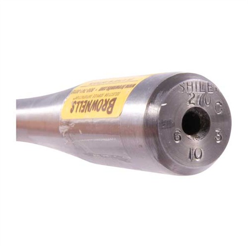 All kärlek och omsorg från den bästa vapensmed och den noggranna uppmärksamheten på detaljer från mästermaskinisten kan inte få en pistol att skjuta raktare än vad noggrannheten hos den använda pipan tillåter. Det är insidan av en pipa, det mycket små och viktiga området av lands och spår som vapensmeden inte har kontroll över, som kan avgöra om det färdiga konstverket är för skjutning - eller \"bara för utseendet\". Hantverk... inte pris... avgör kvaliteten på en pipa. Men, å andra sidan, är kunden som är villig att spendera pengar på en specialpistol verkligen kortsynt om han börjar spara och beställer \"bara vilken gammal pipa som helst så länge den är billig\". Vidare riskerar han ditt rykte som vapentillverkare genom att göra en sådan begäran. Vi, som din leverantör, lägger vårt rykte (och ditt också!) på spel genom att erbjuda dig pipa blanks. De måste vara bra, annars är vi i trubbel! Stort trubbel!! Vi måste aldrig sälja dig något annat än det som kommer att öka din status inom ditt yrke. Och vi känner att Brownell-pipan, tillverkad för oss av Ed Shilen, kommer att göra just det! Shilen-pipor, antingen krom-moly eller rostfritt, är räfflade med sex lands och spår genom \"Cold Forming\"-processen med hjälp av karbidstansar tillverkade i Shilens egen fabrik under de mest strikta kontroller. Denna räfflingsmetod uppnår extremt nära inre enhetlighet från breech till muzzle. Färdiga pipor inspekteras med luftmätning (luftmätningens känslighet är .00005\" - fem ett hundratusendelar!) och 6X borescope-inspekterade. Alla pipor, .22 till .30 kaliber har spårtoleranser inom .0005\" och enhetlighet inom .0003\". Ingen rakning görs, och alla pipor är helt stressavlastade. Alla rostfria stålpipor är handslipade på fabriken. Endast de pipor som passerar alla specifikationstester erbjuds till handeln. Varje pipa som ens är något \"misstänkt\" startas om genom produktionsprocessen och borras till en stor kaliber. På inget annat sätt kan kvalitet och rykte upprätthållas. Lite dyrare att producera - men oerhört mycket bättre i kvalitet och slutlig prestanda.