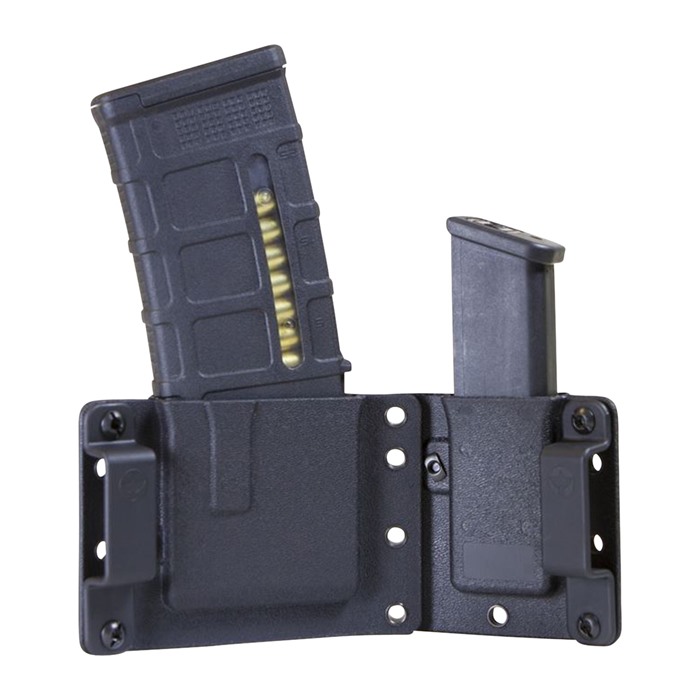 The Copia rifle magazine carriers are premium, duty-grade, injection-molded magazine carriers designed for hard-use, daily concealed carry. Their innovative cavity design and retention system allows them to be used ambidextrously with both aluminum and polymer AR magazines from many manufacturers. We have now combined this with our versatile Copia pistol magazine carrier designed to fit most double stack 9/40 magazines. Nicknamed the "Contractor Rig" this set up is both efficient and effective.