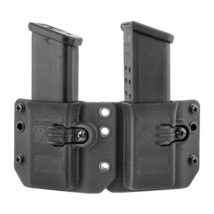 Copia magasinbärare är premium, tjänsteklass, injektionsformade magasinbärare som är designade för hård användning och daglig dold bärning. Deras innovativa kavitetdesign och retention-system gör att de kan användas ambidextröst med dubbelstacks magasin från nästan 100 olika pistolmodeller som är kamrade i 9/40/357 Sig.