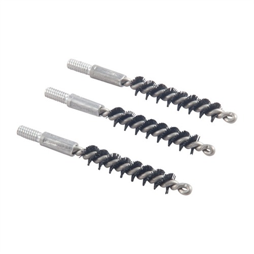 608060000307 Rengöringsborstar har maskinbearbetade aluminiumkomponenter som inte reagerar med ammoniakbaserade lösningar som mässingsdelar ibland gör. De kommer inte att producera blågröna fläckar på dina lappar som kan misstolkas som "falskt positiva" indikationer på kopparbeläggning, så du kommer att veta när din borr verkligen är kopparfri. Liknande i hårdhet som mässing, kommer Copper Eliminator-delar inte att repa borren eller skada mynningen, och de står emot hård användning. Nylonborstar som är lindade runt en aluminiumkärna och en hantrådad aluminiumkoppling är helt mässingsfria för att eliminera falskt positiva blågröna indikationer på kopparbeläggning som kan uppstå vid användning av ammoniakbaserade lösningar med borstar med mässingskärna. Tätt packade nylonborstar ger gott om skrubbkraft, men är extremt skonsamma mot räfflingen. .17 och .20 kaliberborstar med 5-40 gängor utvidgar fördelarna med Copper Eliminator-systemet till din befintliga småkalibriga stav. Borstar i .22 kaliber och större har 8-32 gängor för användning med Dewey Copper Eliminator-stavar.Levernastid ca. 14-21 dagar.