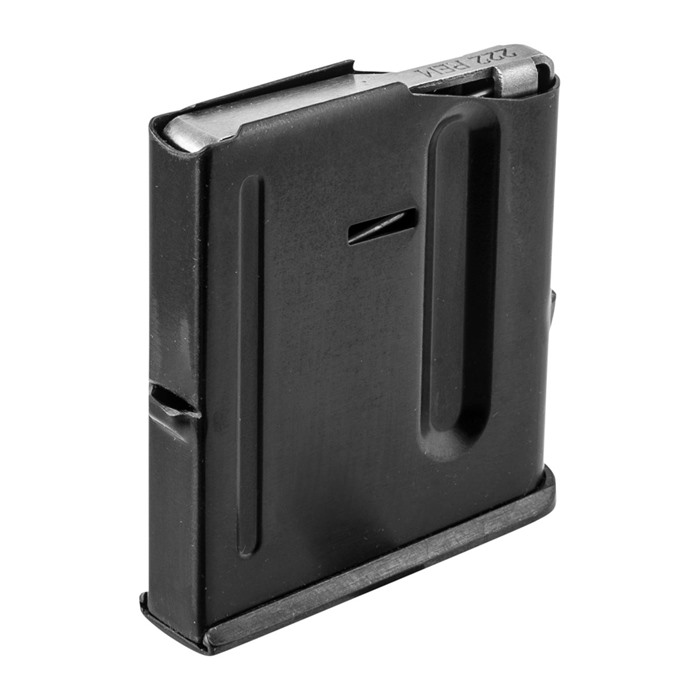 Straight from the manufacturer of your rifle, these magazines ensure your CZ "mini Mauser" cycles rounds smoothly, without glitches. Traditional steel construction mag body, matte blued finish. Steel follower is left in-the-white, with the cartridge stamped on it. Removable base plate for easy cleaning.
