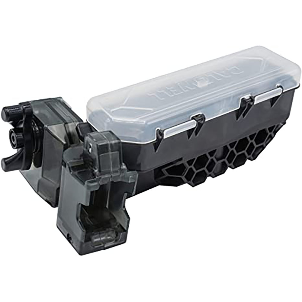 661120417521 • Den snabbaste T/CR22 och 10/22 magasinladdaren på marknaden som rymmer upp till 100 skott av 22LR ammunition i tråget • Hållbar konstruktion i polykarbonat • Snabb och enkel ammunitionladdning ger mer tid för skytte • Tråget orienterar automatiskt ammunitionen korrekt • Släpp helt enkelt ammunitionen i tråget, sätt in magasinet och vrid handtaget för att ladda
