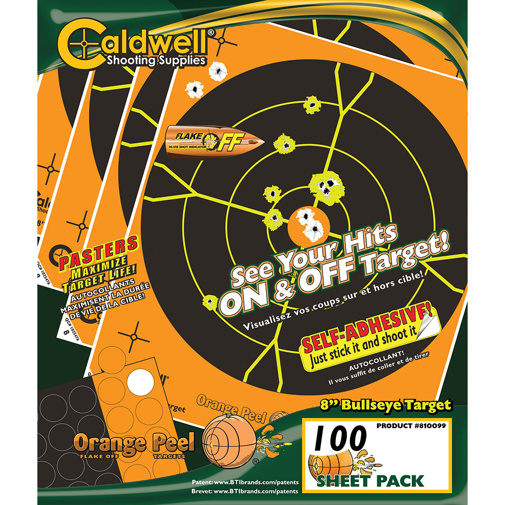 Med Caldwell® Orange Peel® Targets kan du enkelt se träffar på och utanför målet tack vare den unika dual-color flake-off teknologin som gör dina träffar till färgglada explosioner. Om ditt skott missar bullseye, vet du direkt var kulan avvek.
