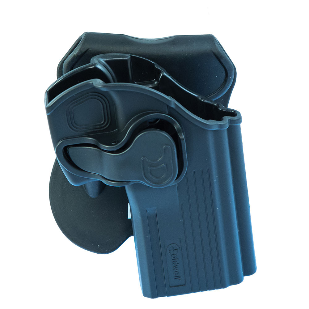 Tac Ops retention-holstren är tillverkade av förstärkt polymer och är designade för att anpassa sig till flera olika handgunmodeller. De har även en trigger guard retention lock för ökad säkerhet.