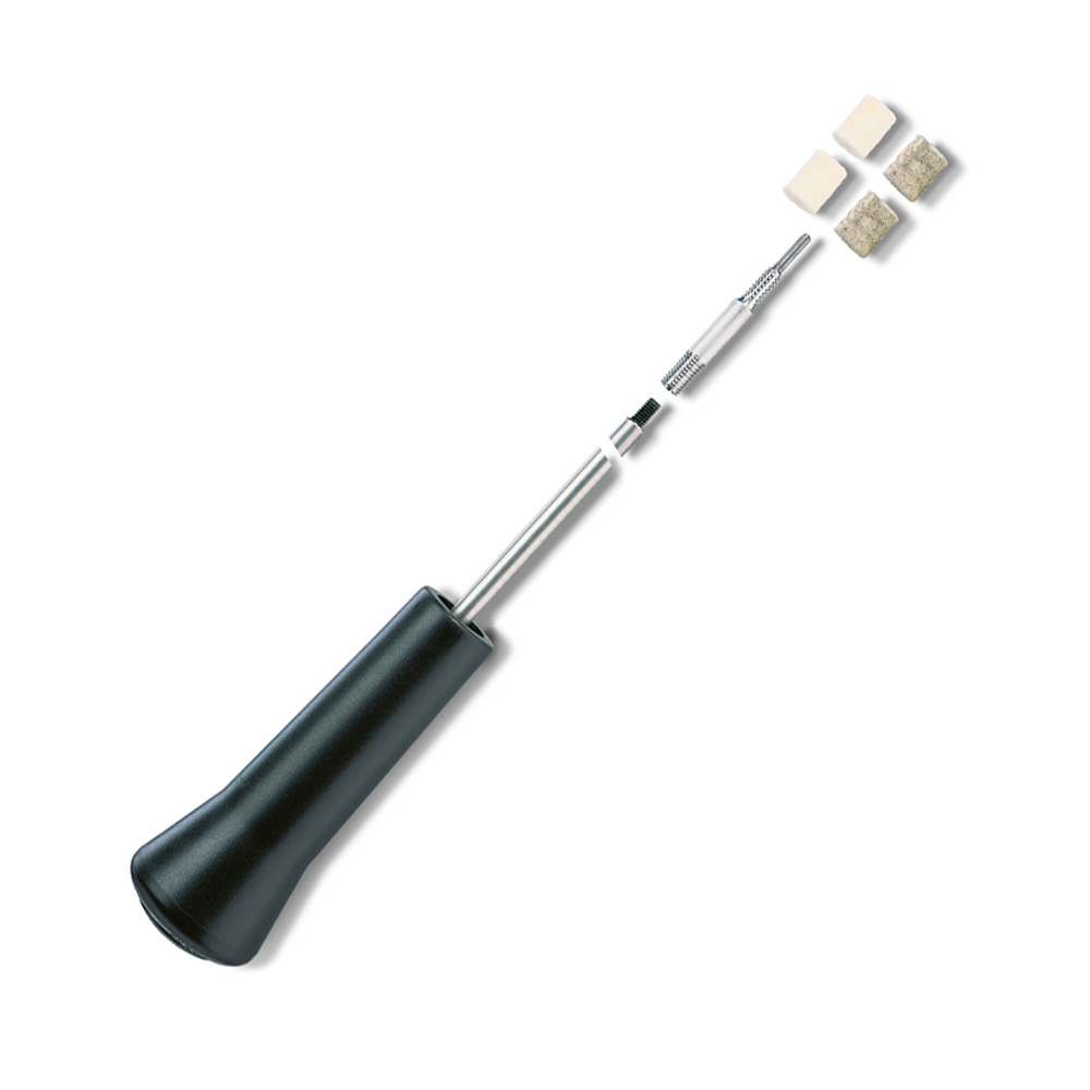 4260419147123 Rengöringsstängerna är tillverkade av rostfritt stål (Power-Line Profi) eller en lättare aluminiumlegering (Fun-Line Sport) med ett halkfritt och ergonomiskt polyamidhandtag. Detta innehåller två underhållsfria och smidigt rullande kullager, så att VFG-piprensaren som skruvas på adaptern kan följa rörelserna under rengöringsprocessen. Beroende på användning rekommenderar vi den 1- eller 3-delade rengöringsstaven. Fördelen med den en-delade designen är stabiliteten - den tre-delade imponerar med sin kompakta design, t.ex. på resande fot. Den tre-delade designen kan användas universellt för långa och korta vapen och erbjuder därför en ytterligare fördel. Specifikationer:Längd: 900mmför kaliber: .22 - 6.5mm Innehåll: Rostfri stål rengöringsstav (3-delad) Adapter M5 extern och 1/8 "intern gänga (aluminium)Restorder. Skickas när det finns i lager. Leveranstid ca 4-12 veckor från europeiskt lager.