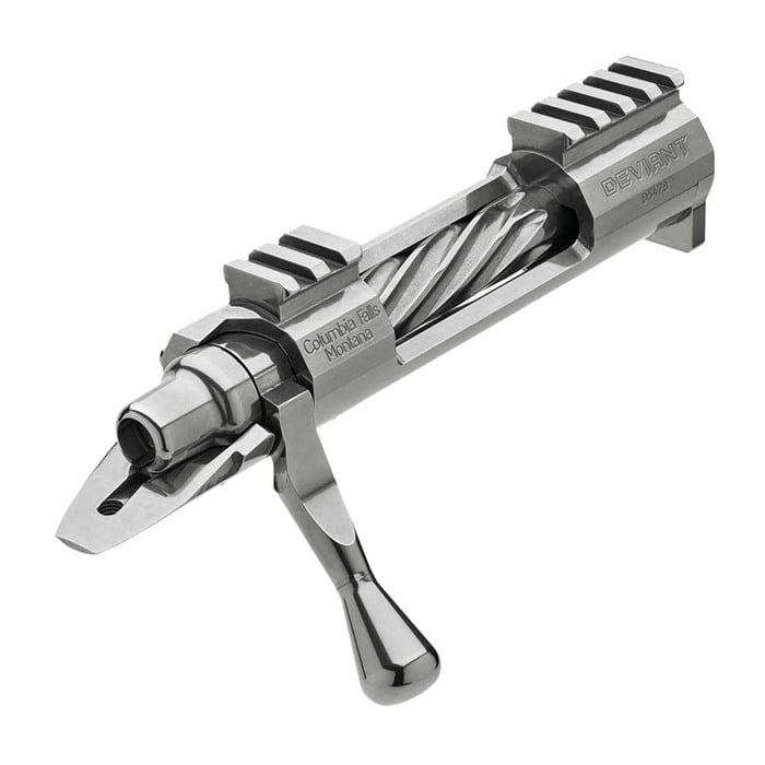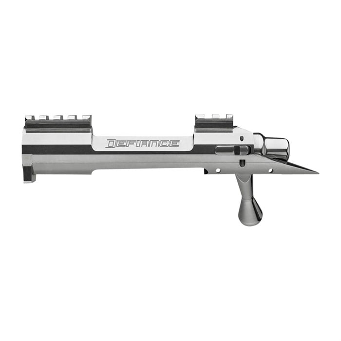 Whether you're building a dedicated hunting rig, a competition-ready match rifle or a general-purpose rig that can handle both with ease, the Defiance Machine Deviant GA Hunter rifle action is built to suit your needs. This rifle action is built with an open top, which allows for quick loading of BDL-style magazines, but the design is compatible with detachable-box magazines as well. The Defiance Machine Deviant GA Hunter action can be had in a number of configurations. The Long Action Magnum model comes with a .545 bolt face and is designed for use with hinged floorplates and Wyatt's Ultra Mag and standard internal box magazines. The Long Action model comes with a .595 bolt face and is designed for use with Rigby-length internal box magazines. A Medium Length action is equipped with a .408 bolt face. Each Defiance Machine Deviant GA Hunter action ships with the receiver body, one-piece bolt, bolt stop, bolt release, release pin and spring, extractor, knob, firing pin and pin spring, cocking piece, bolt shroud and trigger pins. Bolt fluting is available as an optional extra on push-feed bolts, and the actions can be had with either repeater or single-shot magazine cuts.