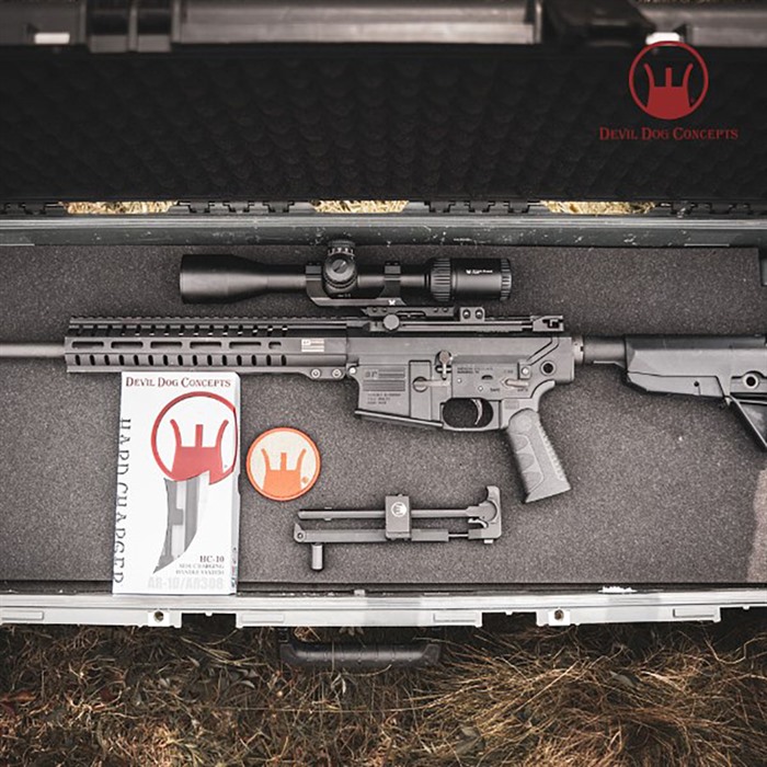 DEVIL DOG CONCEPTS AR-308 HC-10 SIDE CHARGING HANDLE W/FOLDING HANDLE HC-10: The AR-10/AR308 Side Charging Handle – with Folding Handle Sick of the charging handle on your AR-10/AR308 Rifle! Turn your 308 AR style rifle in to a Side Charger? Turn your rifle in to a Side Charger without having to rebuild or modify it. Simply swap out the charging handle and install the Hard Charger. Takes a couple minutes and you are up and running! FEATURES Devil Dog Concepts’ Side Charging Handle System = Ergonomically Beneficial Multiple Ways to Charge Interchangeable from Rifle to Rifle Non Reciprocating Removes Stress on Roll Pin Reduces Torque on Charging Handle Field Strippable – Gross Motor Skills Plenty of Room for Mounting Optics and Sights The HC-10 Side Charging Handle for 308 type AR platforms is designed to adjust to different thicknesses of the varying types of these rifles. The HC-10 is also designed to adjust for different picatinny rail heights and picatinny slot orientations. Does not work on POF Piston Driven rifles or DPMS G2 and similar. SPECS For AR-308 Rifles Not for Sig 716, DPMS GII, or POF Piston Made from 7075 Aluminum Anodized Black, and Steel Weighs 7oz 5 year manufacturer warranty. U.S. Patent No. 9,746,263 U.S. Trademark Reg. No. 5,354,510