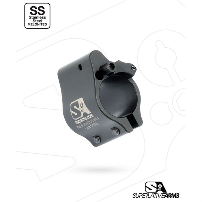 - Justérbar gasblock: Superlative Arms gasblock med Patented Bleed Off® Mode och Patented Exterior Locking Detent för justeringsskruven.