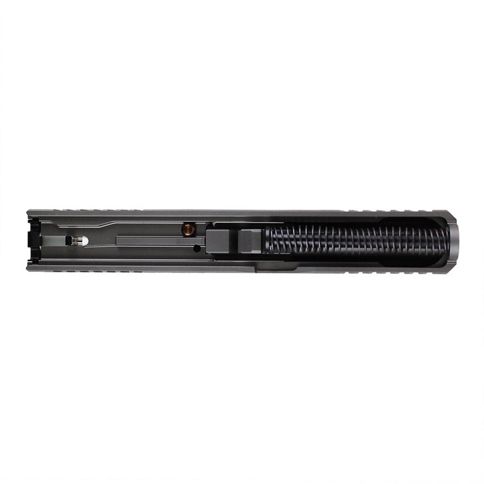 Övre delen inkluderar också ett 416 rostfritt stål PVD-belagt lopp med den nya DUSK 19-profilen och finns i antingen gängad eller icke-gängad version. Huvudfickan och laterala ribbor minskar bärande yta för snabbare cykling och beläggningsslitstyrka.