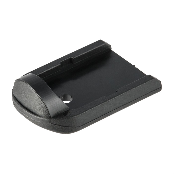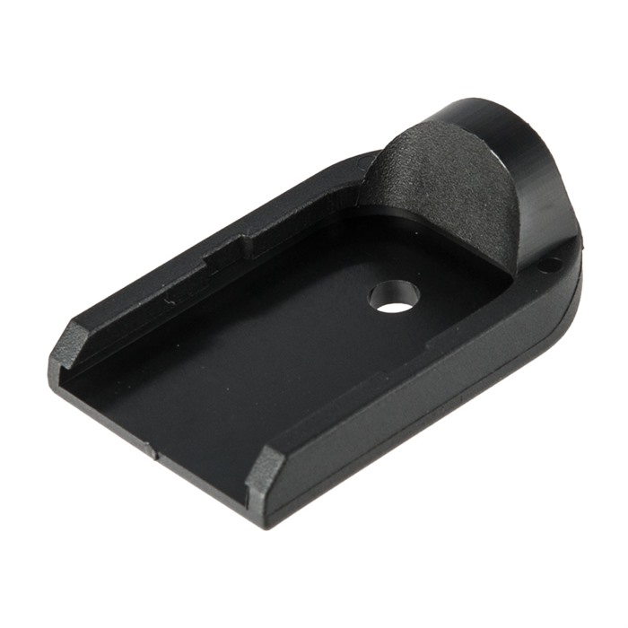Varje Enhanced Baseplate är en enkel, utbytbar ersättning för OEM-fabriksbasplattorna på Glock G19-magasin. När den väl är monterad på en fabriksmagasinkropp fyller golvplattan det halvmåneformade urtaget i det främre området av greppet, vilket ger ett mer bekvämt grepp om vapnet.