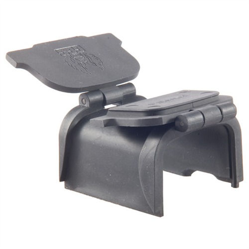 Den flexibla gummikroppen med fjädrande ABS-plastlock hjälper till att hålla borta smuts, damm och fukt, vilket gör att linseytorna förblir rena, repfria och redo för användning. Flikarna på höger och vänster sida av locken möjliggör en snabb, ambidextrous flip-open-funktion med tum- eller fingert tryck. Framsidan av locket öppnas till en nästan horisontell position för att blockera regn eller solljus. Baklocket viks tillbaka ovanpå EOTech:s skyddande huva för att säkerställa en oavbruten sikt genom siktet.