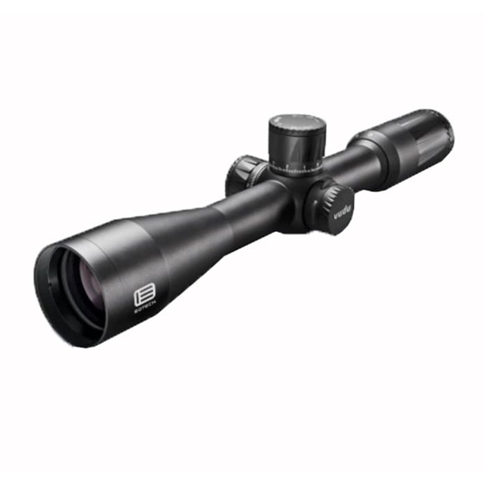 EOTech's Vudu 2.5-10x44 is the scope of choice for rifle shooters who want precise mid-range target engagement in a surprisingly compact - and affordable -package. Extremely clear XC High-Density glass lenses in the Vudu 2.5-10x44 have broadband anti-reflection coatings to produce bright, high-contrast images with low-distortion. With its first focal plane, enhanced cross-hair reticle, the Vudu 2.5-10x44 allows you to range targets with speed and precision at all magnification levels. At dawn or dusk, when ambient light is low, the illuminated reticle ensures you can still differentiate the target from the reticle. Smooth, graduated turret adjustments. When mid-range engagements with your Modern Sporting Rifle or bolt gun demand serious accuracy and image clarity, EOTech’s Vudu 2.5-10x is up for the challenge. Choose windage/elevation adjustment in MOA or MRAD MRAD model’s range: - ±14.5 min elevation/±8.5 min. windage in 0.2 MRAD increments MOA model’s range: ±50 MOA elevation/±30 MOA windage in 1/2 MOA increments Pushbutton on/off reticle illumination - auto shutoff after 2 hours to preserve battery life One-piece aluminum tube, hardcoat anodized (Type III), matte black finish Runs on one CR-2032 battery.