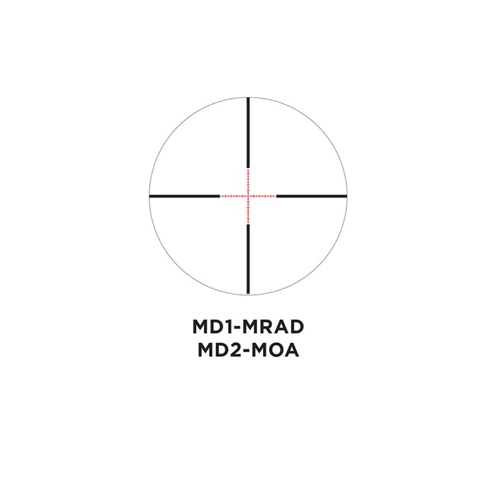 - MOA-modellens räckvidd: ±50 MOA höjd/±30 MOA vind i 1/2 MOA steg