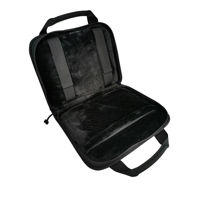 Väskan har också en mjuk, debossed fleece-inredning som skyddar finishen på ditt vapen. Denna premium pistolväska är ren, elegant och funktionell. Den är designad med ett inre dragkedjefack för dina tillbehör, samt har kardborreband för att säkra ditt vapen.