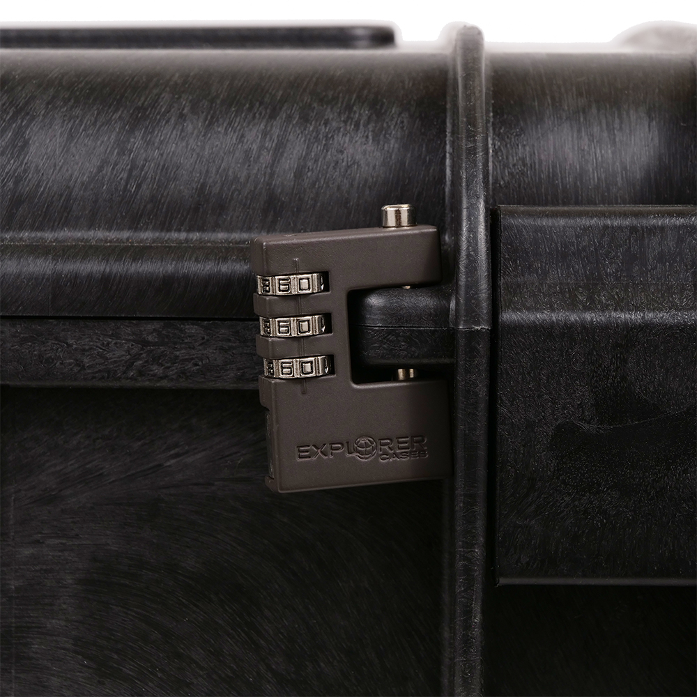 - Placera låset i låsanordningen på din Explorer Case.