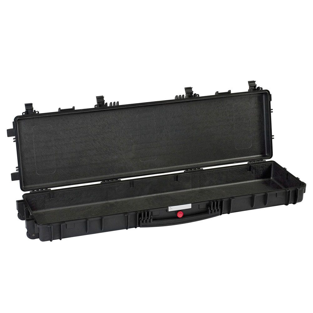 8024482182841 The best protection for your most precious baby - The ultimate weapon case with a variety of functions in the highest quality, manufactured by Explorer Cases in Italy. Specs: Length: 1430mm (1350mm inside) Width: 350mm (350mm inside) Depth: 135mm (135mm inside) Weight: 8,70kg Color : Black Literally indestructible The weapon cases from Explorer Cases each have corrosion proof metal hinges with lid stay features, which fixate the cover and hold it into place when opened. So you can rest assured that your weapon cases will assist you a long long time. Thanks to the locking latches the weapon cases are always highly secured. The O-ring gasket also makes them water resistant to a great extend. Every weapon case is equipped with a manual air pressure release valve. Therefore you can take it easy and will have no problem handling and closing the case. Exactly how you want it The cases are provided with internal cutouts for optional internal brackets or mounting rings, so you can store everything exactly as it is most suitable for your requirements. Every single suitcase comes with a waterproof removable label with which you can label your equipment or store your data. The case can either be transported traditionally via the large front handle or via optional shoulder straps, which can be easily attached to any model. The Mod Red 13513 series can also be used as trolley case.Utgått från Brownells