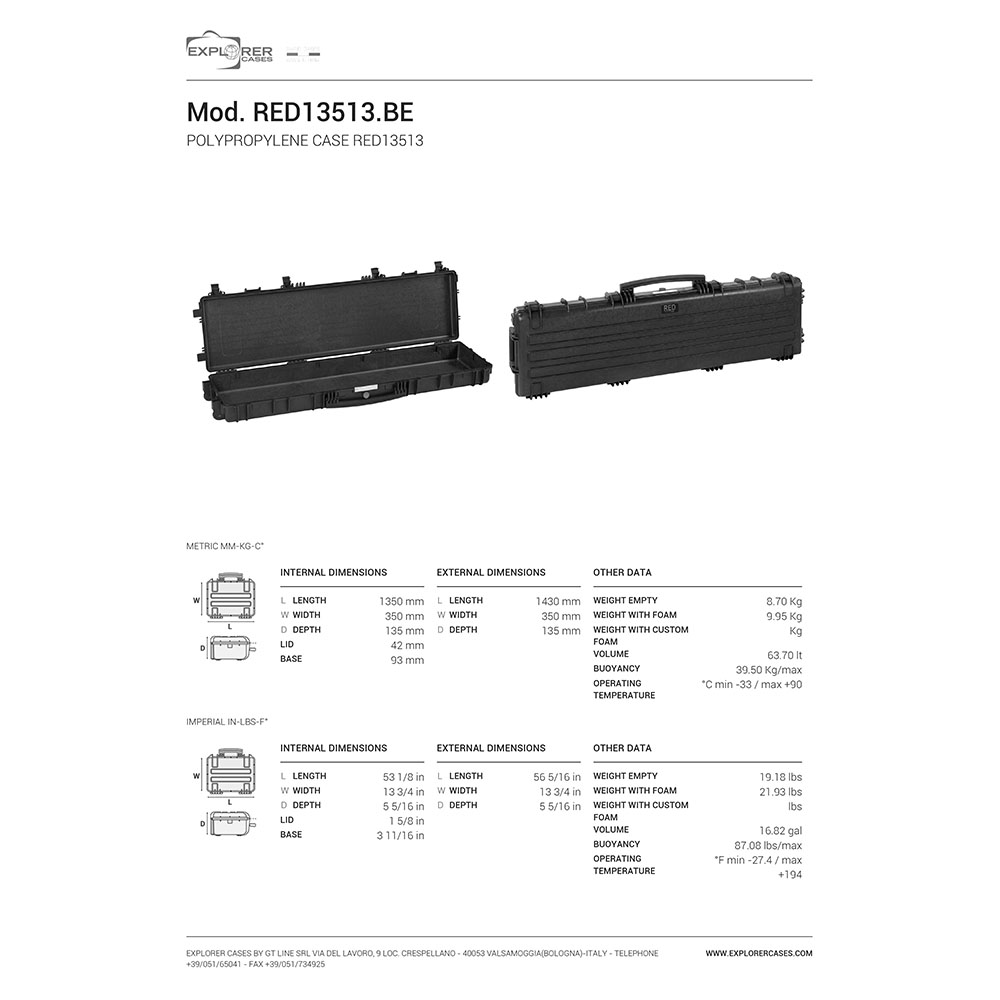 EXPLORER CASES Red 13513 BE är det ultimata vapenkitet med en mängd funktioner i högsta kvalitet, tillverkat av Explorer Cases i Italien.