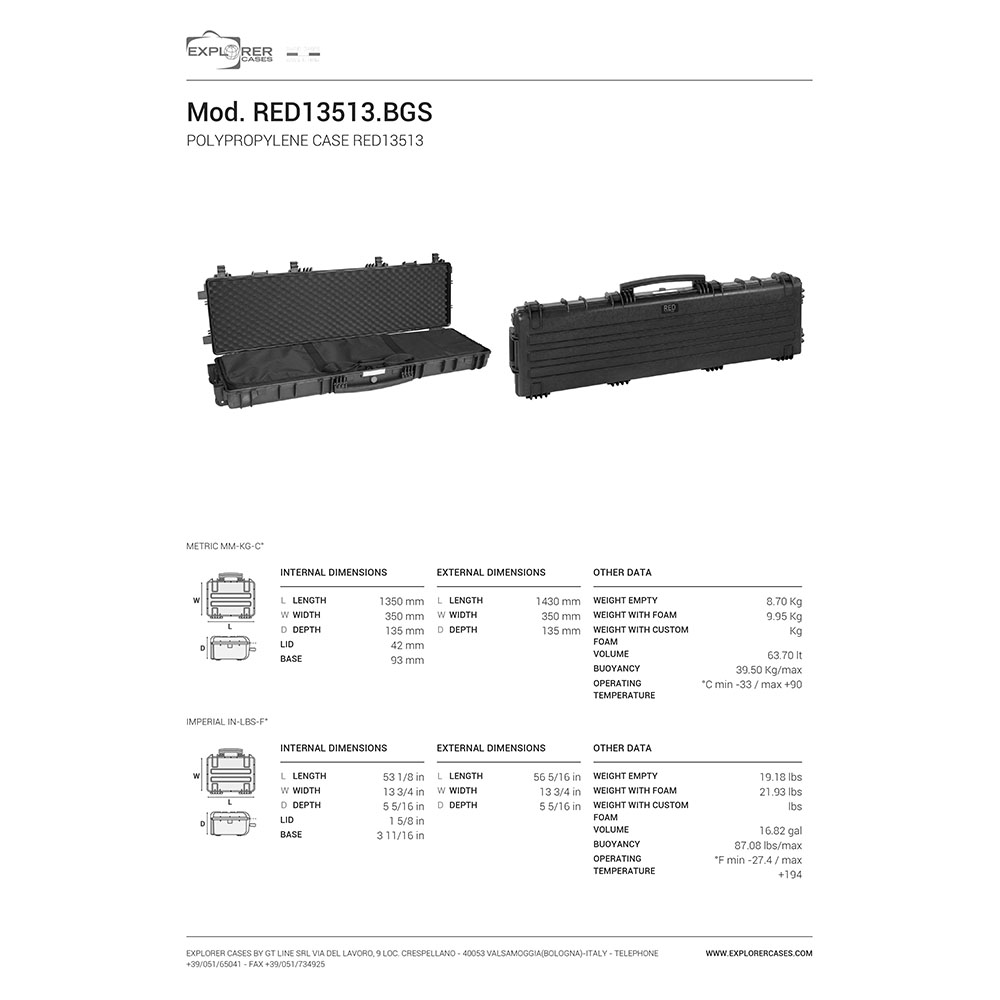 Upptäck RED 13513, EXPLORER CASES Red 13513 BGS - inkl. Gunbag, den ultimata vapenkassen med en mängd funktioner i högsta kvalitet, tillverkad av Explorer Cases i Italien.