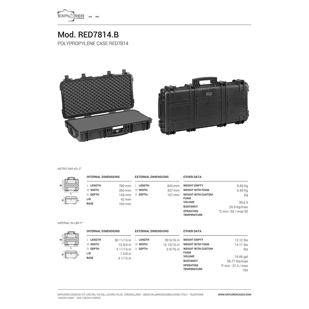 EXPLORER CASES Red 7814 B - Pre-Cube Foam är det ultimata vapenskåpet med en mängd funktioner i högsta kvalitet, tillverkat av Explorer Cases i Italien.