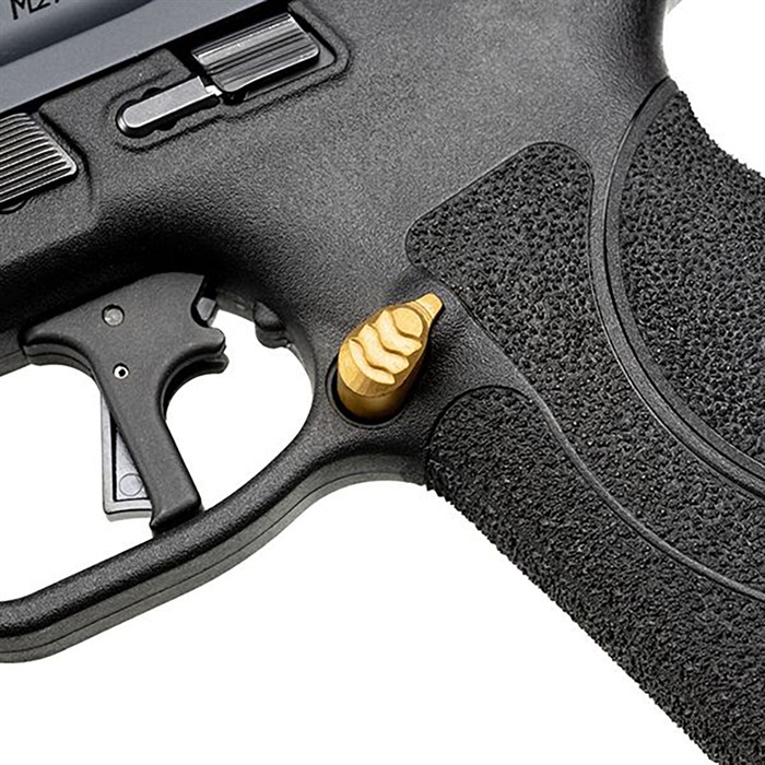Medan funktion är av största vikt, kompromissas inte estetiken. Den polerade ytan på S&W M&P förlängda magasinrelease säkerställer inte bara skydd mot elementen utan utstrålar också en sofistikerad glans, vilket höjer vapnets inneboende skönhet och gör det till mer än bara ett verktyg, utan en uttalande del.