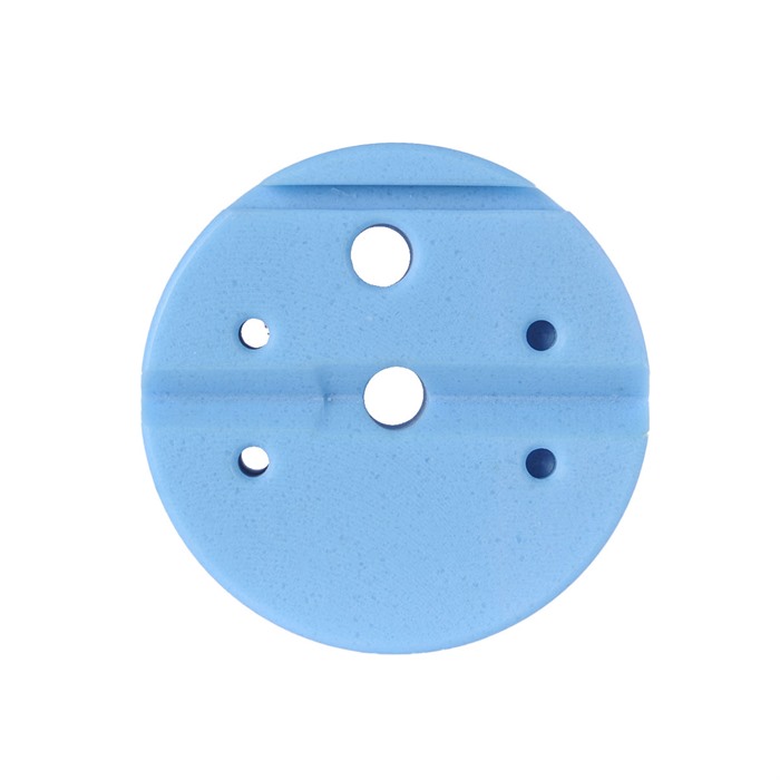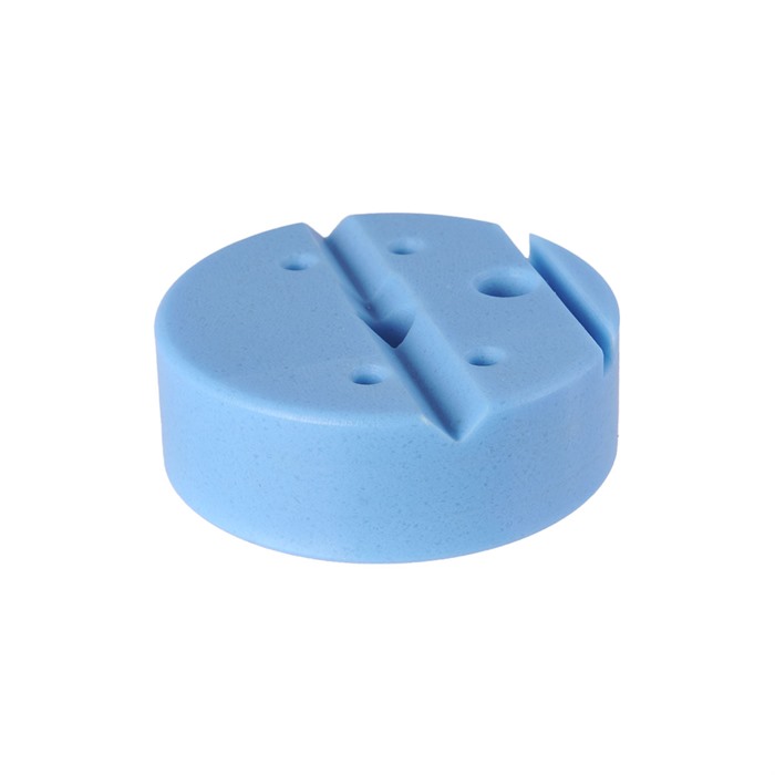 Polyeten, grön eller blå. 4" (10cm) diameter, 1-1⁄8" (2.8cm) hög.