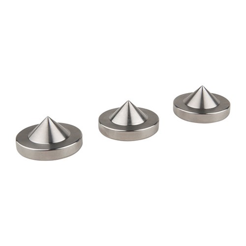 Restfötterna är tillverkade av solid rostfritt stål och har en konisk spets på undersidan för att gräva ner sig lite. Perfekta för alla typer av skytte där din rests fot placeras på marken. De har en diameter på 2,5 tum vid den bredaste punkten. Försäljs i ett set om tre.