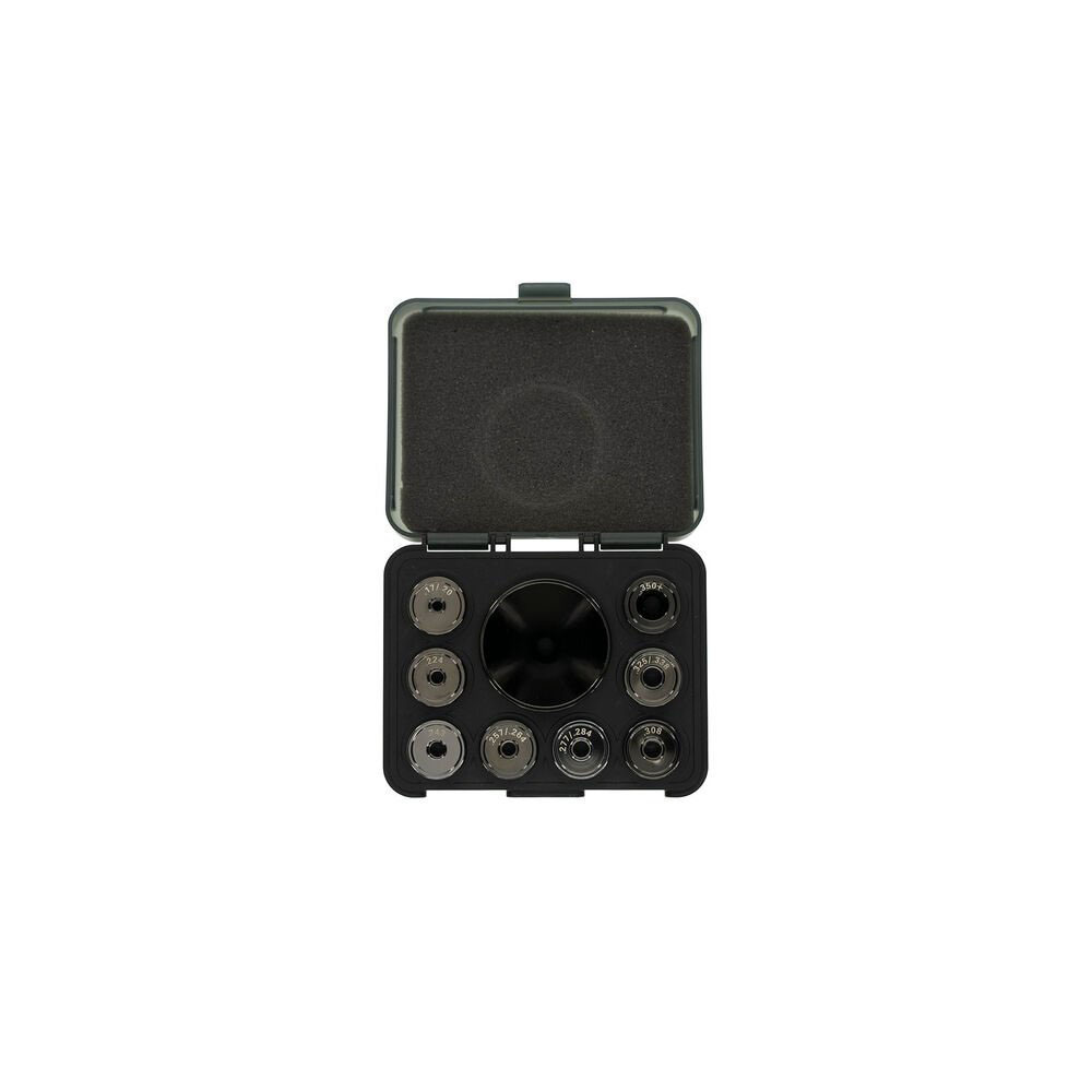Frankford Arsenal Aluminum Powder Funnel Kit gör det enkelt att fylla hylsor från .17 kaliber och uppåt med noggrannhet. Varje munstycke har en o-ring som passar säkert i tratten, vilket eliminerar risken för spilld krut.