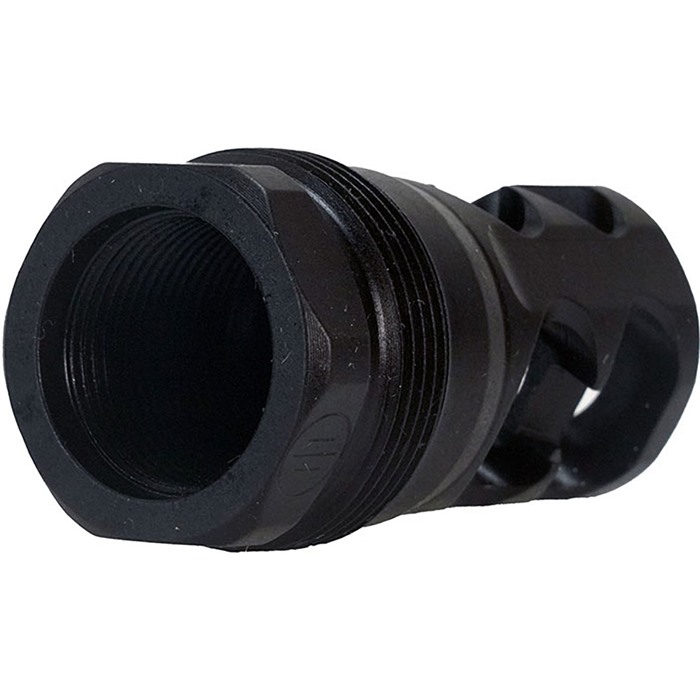 Elevate your shooting experience with the cutting-edge PWS FRC square compensator, designed to be a suppressor host for the Rearden Atlas suppressor mounting system, accommodating popular suppressors like the BDE 762. Crafted with precision and innovation, this compensator stands as a premier selection for a diverse range of shooting scenarios. The PWS FRC compensator sets itself apart by prioritizing recoil reduction as its primary function while simultaneously excelling at flash suppression. Its distinctive 2-port design skillfully redirects flash away from optics and the line of sight, ensuring an unobstructed view and minimizing overpressure. When paired with suppressors, the FRC boasts a tight lockup and maintains it through hard shooting cycles. Mounted precisely, the FRC becomes a crucial component in your rifle's comprehensive recoil management system. By effectively mitigating recoil and muzzle rise, this compensator enables swift follow-up shots, ultimately delivering improved shooter control and accuracy. Choosing the PWS FRC provides the best of both worlds—superior recoil management and effective flash suppression—making it an indispensable asset for any shooter looking to enhance their shooting prowess and overall experience on the range or in the field. Select between flat shouldered option, for traditional rifle barrels, or tapered shoulder, for barrels with a tapered shoulder behind the muzzle threads.