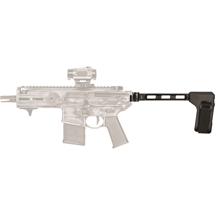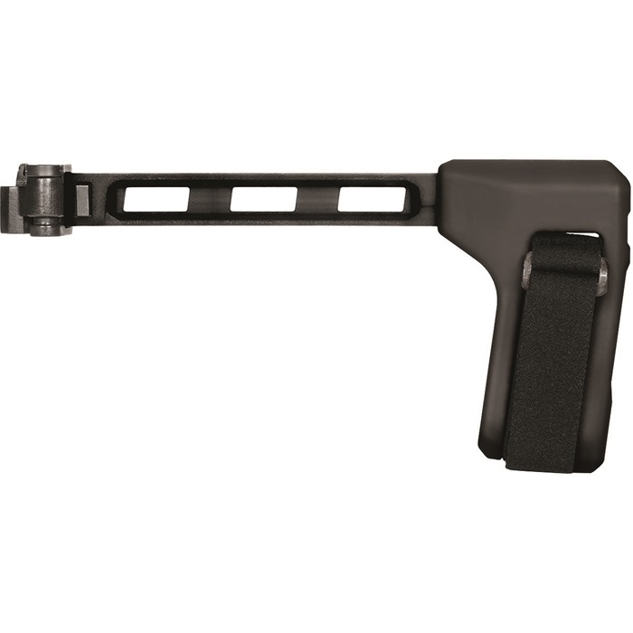 FS1913 FOLDING PICATINNY PISTOL STABILIZING BRACE A low-profile, left side-folding, strut design compatible with all platforms utilizing an M1913 (Picatinny) interface at the rear of the receiver. The FS1913™ is a complete assembly offering pull-through opening and a solid lock-up when extended. FEATURES Advanced steel hinge design locks in both folded and extended positions Pull-through design offering quick deployment Offered with a light-weight 6061 aluminum strut US veteran designed and proudly made in the USA PRODUCT INCLUDES: Complete assembly Adjustable nylon strap FS1913™ SPECIFICATIONS FIT: Platforms with M1913 interface at rear of receiver (SIG MPX, SIG MCX, SIG Rattler, Rock River LAR-PDS, etc.) WIDTH [MAX]: 1.2" LENGTH: 9.6" (FS1913) / 9.25" (FS1913A) STRAP WIDTH: 1.0" WEIGHT:13.0 oz (FS1913) / 10.0 oz (FS1913A) COLOR: Black SB Tactical products are designed and intended only for use as forearm braces to provide a more stable firearm platform. They are neither designed nor intended to be fired from the shoulder. As configuration changes may alter the classification of a particular firearm, the user bears sole responsibility for determining the correct application of state and federal law.