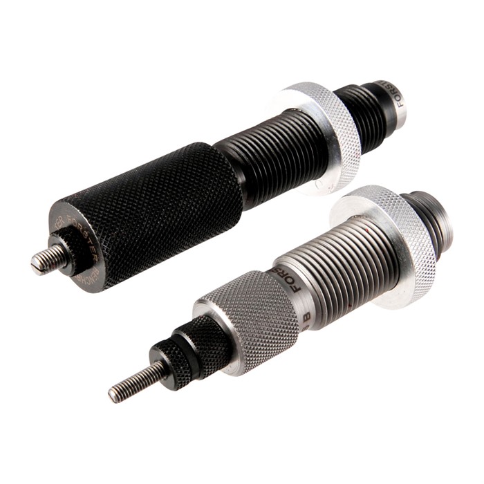 En full length två-die set är den die set som nybörjare bör börja med, och den die set som de flesta jägare och många måltavleskyttar använder varje gång de omladdar sina hylsor. Dessa Forster full length die sets inkluderar en full length sizing die och Forster Bench Rest seater die.