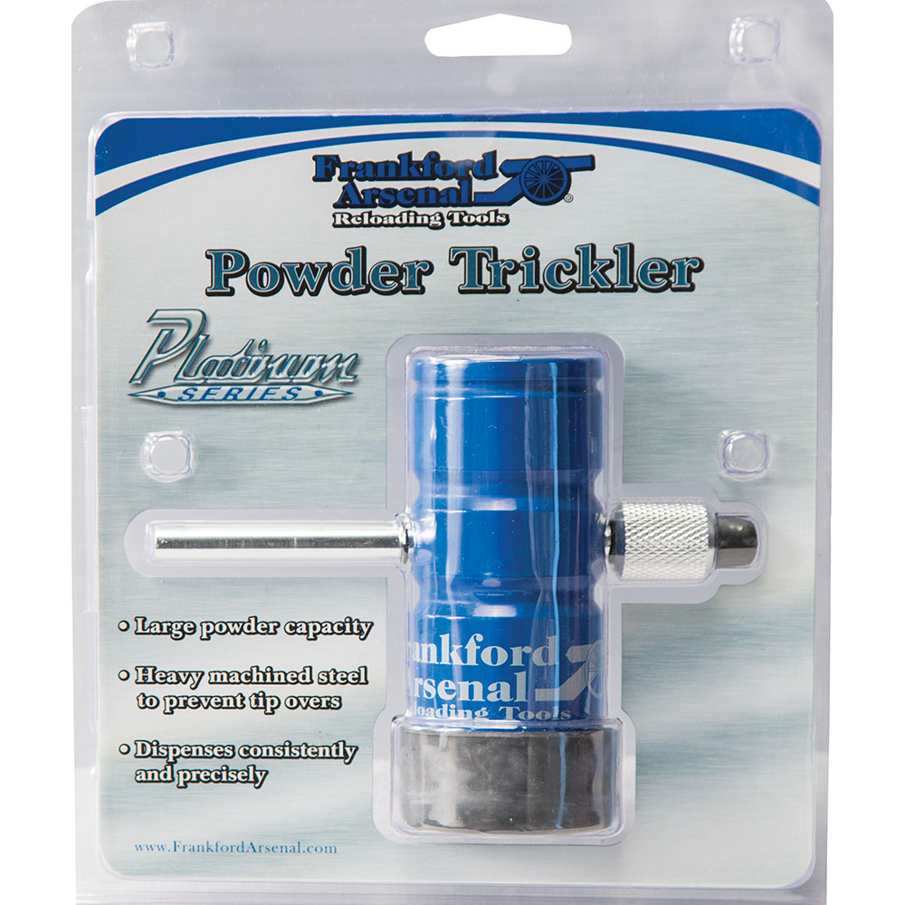 Frankford Arsenal® Platinum Series Powder Trickler möjliggör att mycket små mängder pulver kan doseras för att uppnå exakta laddvikter. Med skydd mot damm och fukt hålls pulvret skyddat medan det befinner sig i tricklern.
