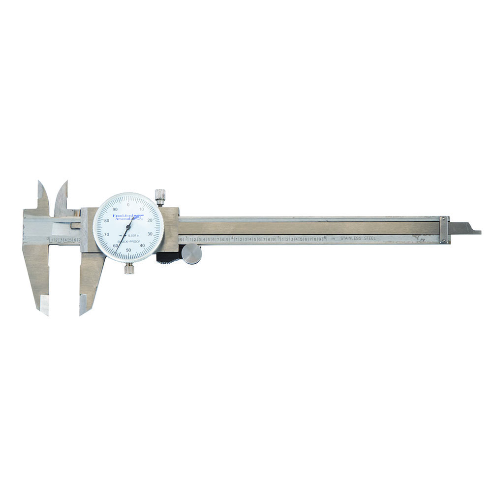 Frankford Arsenal Stainless Steel Dial Caliper erbjuder noggrann mätning av ammunitionens dimensioner, med en precision på .001" och en praktisk skyddande förpackning.