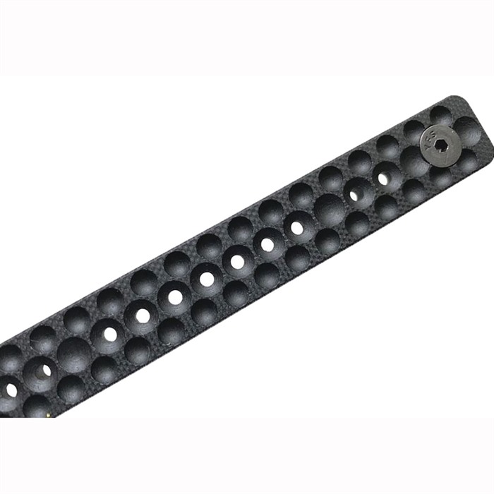 MCF (MLOK Cover, Forward Controls) is a collaboration between Railscales and Forward Controls Design. Machined in G10, with the AA surface (All Angles, or dimpled) pattern we developed for our bolt catch (ABC/R), forward assist (LDFA), ambidextrous magazine release (EMR-A). The AA concept was not developed for aesthetics, but as a versatile surface that offers equal traction from all angles of approach (thus the AA designation). The AA surface can hardly find a better application than hand guard rail covers, where a user's hand can have multiple angles of approach and hold the hand guard in different ways. The AA pattern on the MCF is made of two dimple sizes and depths, a series of large perforations / drain holes are drilled along its length in the middle row of dimples. MCF is available in two lengths: MCF-S (short, 3.2", covers 2 MLOK slots) and MCF-L (long, 4.7", covers 3 MLOK slots), both come standard with MLOK mounting hardware. Width: 0.600" Thickness: 0.125" Length: Long 4.7" Weight: 0.48oz per panel 416 stainless nuts 3/32 Allen key required (not included) Each package of MCF contains one M-LOK cover Machined G10 MLOK hand guard cover Size: 3.2” or 4.7" 2 M-LOK or 3 M-LOK slots