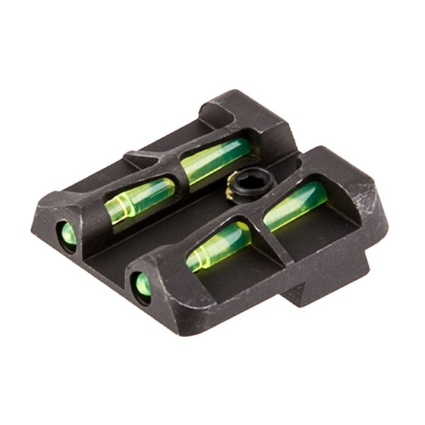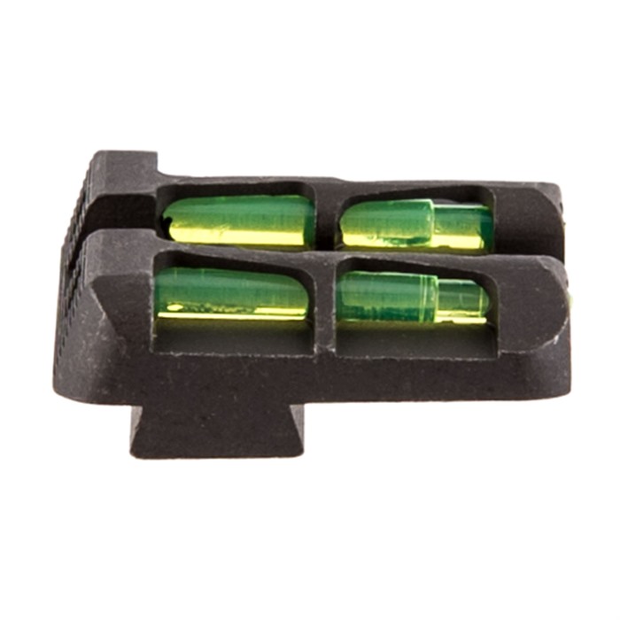 The new LITEWAVE sight design from HIVIZ features an innovative, diagonal-wave design that increases durability to the protective exoskeleton and allows for more exposed surface area for the LITEPIPE to gather light from all angles, for the brightest sight available. GLLW11 is 6.1mm high, and fits models 42 and 43. GLLW15 LITEWAVE Rear Sight is 6.5mm high, and fits 9mm, .40 S&W, and .357 Sig models. All rear sights include red, green, and black LitePipes.