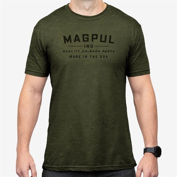 840815135425 Magpul har tillverkat högkvalitativa go bang-produkter för dina skjutvapen i mer än 20 år. Låt alla veta att du har lite Magpul i ditt liv med denna klassiska design på deras atletiska passform i bomulls-polyesterblandning. Funktioner: 4,3 oz, 60% kammad ring-spun bomull / 40% polyester Rund hals med insydda ärmar Bekväm, tagg-fri inre nacketikett Nackband från axel till axel Dubbel-nåls sömnad på fållar och ärmar för hållbarhet Tryckt i USAUtgått från Brownells