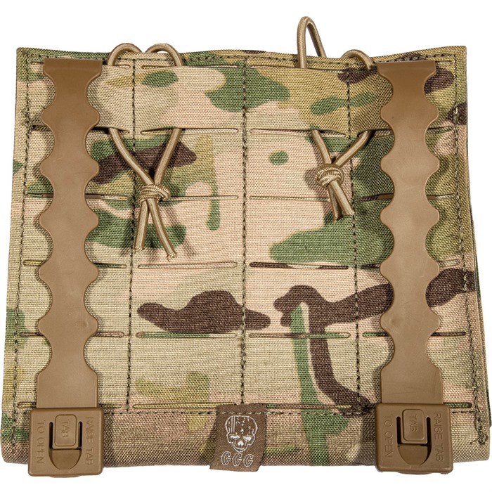 Produkten har en öppen toppdesign med en justerbar bungee-retentionsrem som möjliggör tyst borttagning av ditt magasin. Dessutom finns det modulärt webbmaterial på fram- och baksidan för att möjliggöra stapling av andra fickor.