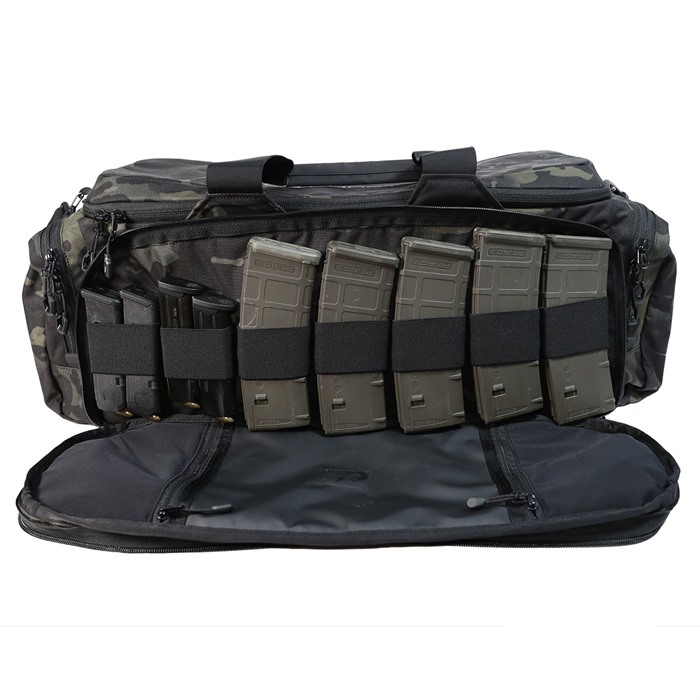 If you need more room for activities in your range bag/hunting duffle/diaper bag then Grey Ghost Gear has just what you've been looking for... meet the Range Bag XL. They took their classic range bag and scaled it up to meet the demands of those of you who like to bring the kitchen sink wherever you go. The XL bag measures 10 inches tall, 23 inches wide, and 11 inches deep, over 2500 cubic inches. It shares many features of its predesssor, from its 500D Nylon Cordura construction, removable padded shoulder strap, customizable partitions for the main compartment, and a fold down vinyl-lined flap with a rare earth magnet sewn in that makes the perfect field repair and maintenence surface especially with its dual zippers on either side for storing small, easily lost tools and parts. The vinyl can stand up to oil and solvents used in cleaning and lubing your weapon as well as blowouts from junior. The elastic loop organizers in this pocket are perfect for stowing pistol and rifle magazines, tourniquets and medical supplies as well as writing utensils. On the reverse side of the bag there is a zippered pocket to accept a staple gun, shot timer or other range essentials. Two exterior zippered pockets on either end are ideal ear and eye pro, gloves, or even baby wipes. The interior of the main compartment is lined with hook and loop material just like it's little brother, so you can configure the 3 divider walls and the removable mesh dump pouch for reloading brass or garbage. The lid has a full length mesh storage on the underside for even more organization of supplies. So whether you are packing up for a morning hunt, a 3 Gun match or a field day with the family, the Range Bag XL has the capacity to bring all the gear you need to succeed. Available in MultiCam, MultiCam Tropic, MultiCam Black, Coyote Brown, Olive, Grey and Black. Overall Dimensions: 23"L x 11"W x 10"H Front Pocket: 21" x 9" x 2" Side Pockets: 8" x 2.5" x 8 Mesh Bag: 5" x 6" Lid Underside Pocket: 20" x 10" x 1" Vinyl-lined Flap: 10" x 8.5"
