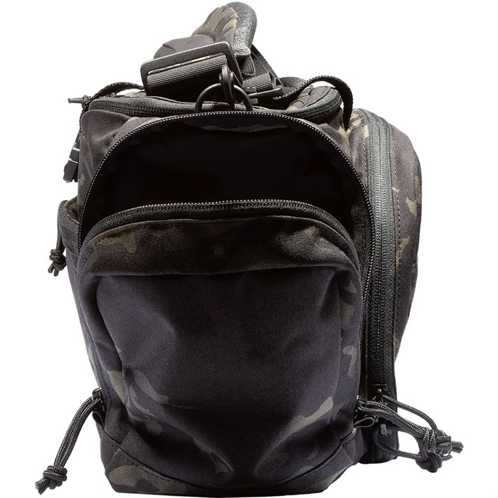 - Organisering: Huvudfacket är fodrat med kardborrematerial, så att du kan konfigurera den anpassningsbara skiljeväggen och den avtagbara mesh-dumpfickan för alla brass-hounds där ute.