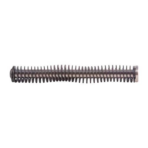 Hardened stainless steel guide rod won’t break or flex and bind the spring like the factory plastic rod. Helps prevent cycling problems, improves reliability and overall performance. Features a captured, ISMI chrome silicon flat spring that’s heat-treated, shot peened, and calibrated to the factory-spec 17 lb. weight. Steel Allen head screw and washer secure the spring to the rod, yet enable easy disassembly for spring replacement.