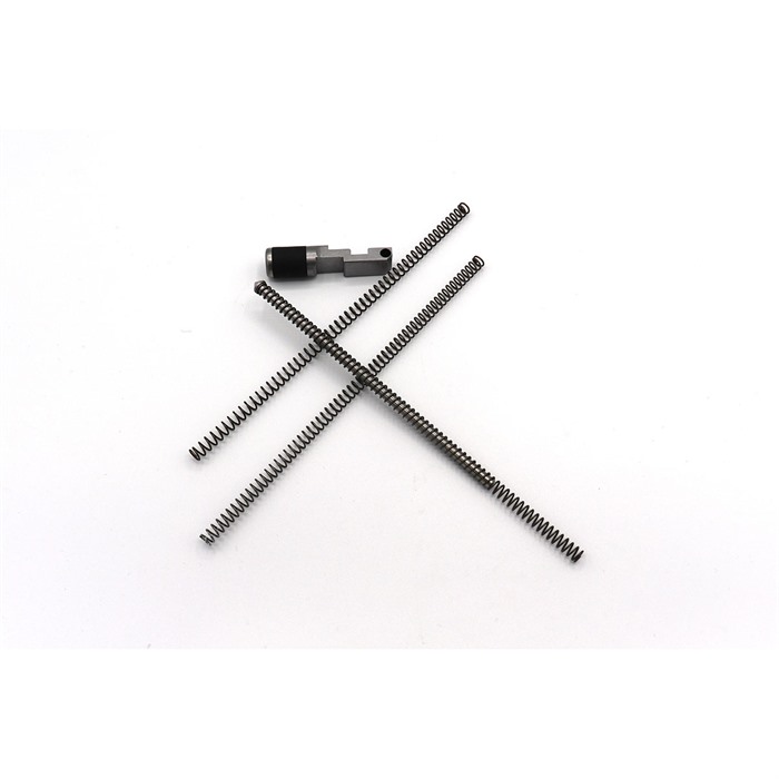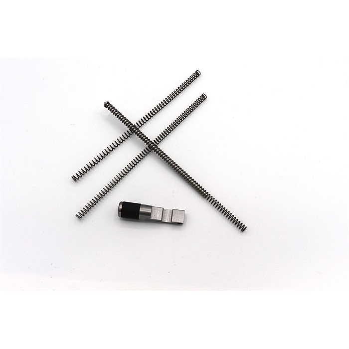 This great upgrade kit for your 10/22 will provide you with a comfortable bolt handle to grasp, a ""super slick"" guide rod, and the ability to tune the recoil of your rifle with their interchangeable springs. All bolt handle lengths are 1 3/4"", which is 1/4"" longer than the factory bolt handle assembly kit giving greater clearance for the shooter's knuckles while racking the bolt. The three tuning springs come in varying tensions for the ultimate in tuning capability. Though by and large the standard tension spring will serve the shooter throughout the different ammunition velocities. If, due to tolerance stacking or preferred ammunition the cycling of the action is out of sync then the shooter has the capability to change the spring without using the more primitive method of cutting coils to tune a spring. FEATURES: Upgrade the bolt handle assembly in the 10/22 3 distinctly contoured handles to choose from Slick guide rod for easy racking Interchangeable tuning springs:(White=standard, Red=10% increase, Grey=10% decrease) Handle Weights: black with black viton cushion = .4 oz silver with black viton cushion= .6 oz black ring (6 ring cuts) = .3 oz silver ring (6 ring cuts) = .6 oz black 762 (modified z shape flute) = .3 oz silver 762 (modified z shape flute) = .6oz Precision ground guide rod is made from hardened tool steel and held to 2/10,000"" tolerance throughout its entire length. The rod is nitride treated which gives its surface a 70C rockwell (harder than a file) surface hardness. Guaranteed the smoothest and slickest guide rod in the industry. Installation instructions: After removing the stock from the barreled action, remove the trigger and bolt stop. This will allow the needed clearance for the bolt to be removed along with the bolt handle assembly. After choosing your proper spring tension slip the bolt handle assembly in from the ejection port, placing the cone end of the rod into the containment hole in the receiver. Then fully compress the bolt handle assembly while placing the bolt on it. After the mating of the bolt handle and bolt, let off the containment allowing the bolt to go forward. Install the bolt stop pin, trigger and stock. The video below offers some of the finer installation points. Packaging Includes: bolt handle guide rod 3 tuning springs