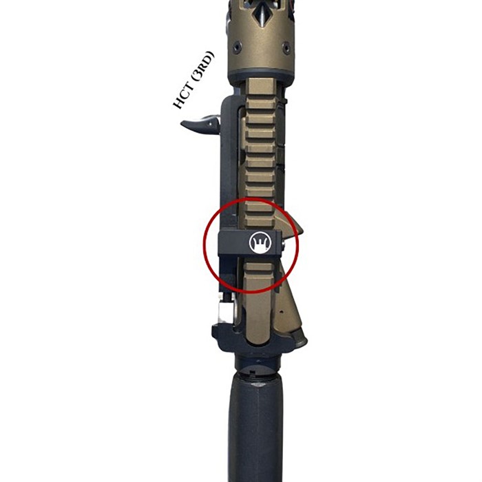 HCT (Hard Charger® Tactical) monteras på den 3:e Picatinny Rail och är designad för att fungera på standard, forgeade, Mil-Spec typ övre mottagare. Denna design monteras mellan en backup-sikte och en frammonterad optik.