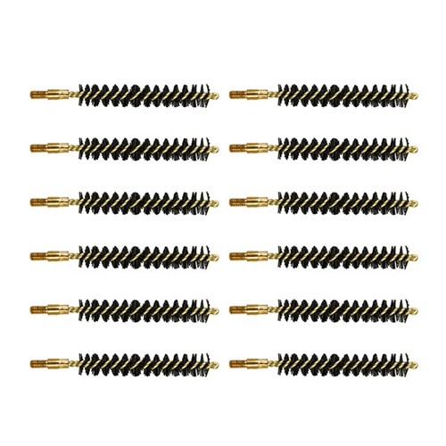 Super-aggressive, nylon brush makes short work of stubborn bore deposits. Extra-stiff, large diameter bristles are safe on rifling and smoothbore surfaces. Won’t deteriorate when used with your favorite solvent. Strong, one-piece, looped and wound brass shank and coupling prevents scratching. SPECS: Bristles: Heavy weight (HW) nylon. Shank: Brass, looped and wound. Overall Length: 3.26” (8.3cm) Thread: 8-32 male