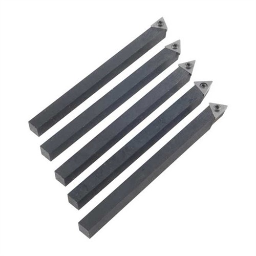 Verktygskit innehåller härdade stålverktyghållare och hög hastighet stålinsatser för snurrning, gängning, profilering och avskärningsarbete. Insatserna är T-15 High Speed Steel (HSS) härdade till Rc 65-67 och är sedan färdighuggna på alla sidor. De erbjuder utmärkt prestanda vid låga hastigheter, precision vid avbrutna snitt och en jämn yta på rostfritt stål, Inconel, Monel, exotiska metaller och plaster.